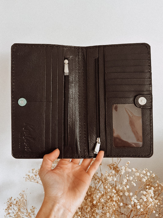 Ruby in Fuchsite Cowgirl Boots Leather Wallet – Medium Tan