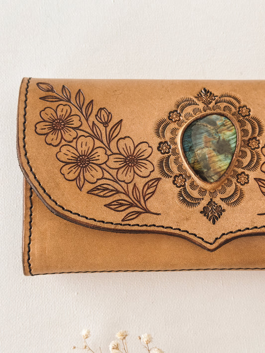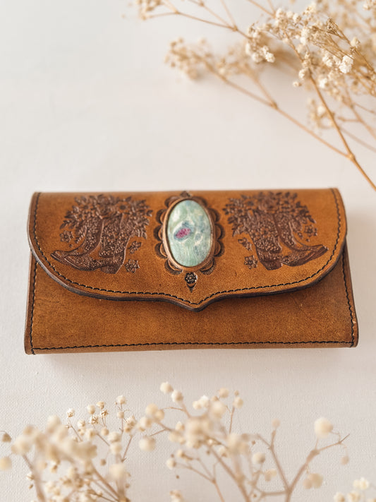 Ruby in Fuchsite Cowgirl Boots Leather Wallet – Medium Tan