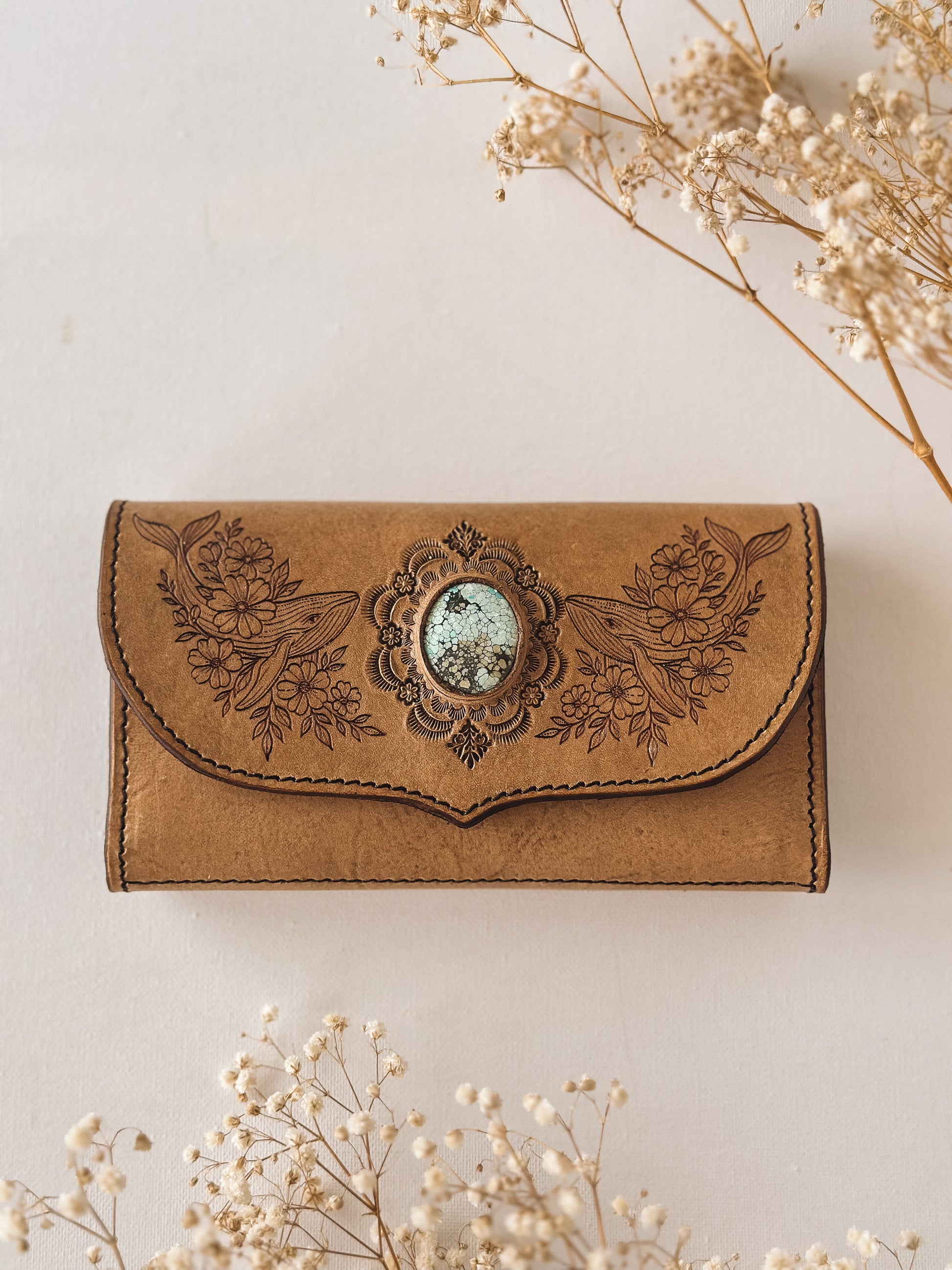 Hand-tooled detailing + real gemstone inlay (each one unique)